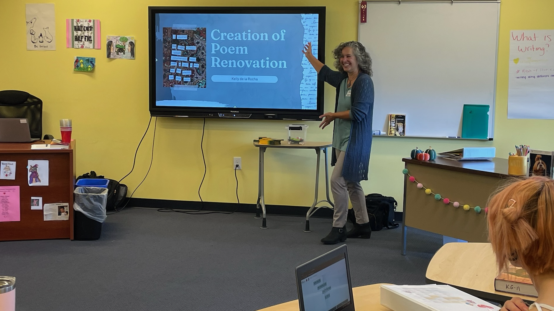 poem RENOVATION’s creator, Kelly de la Rocha, would be happy to bring poem RENOVATION to your school with an interactive workshop for grades six and up, either in person or via Zoom. A journalist and published poet with decades of experience, Kelly will share her knowledge of and enthusiasm for the written word, and offer students a chance to experience the joy of simply playing with language. The only rule: create!